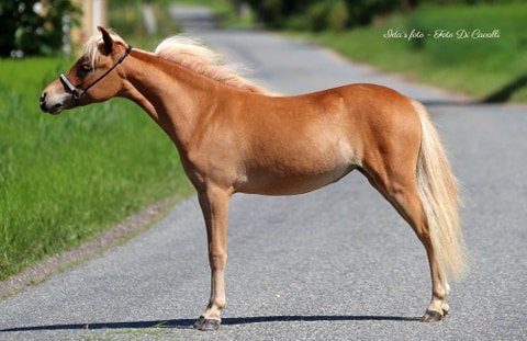 kønt og god udtrykt hoved, passende lang hals, god skulder & manke, god overlinie & bagpart, fine forlemmer, fine baglemmer, middel vid bag i skridt, let trav og middel galop.